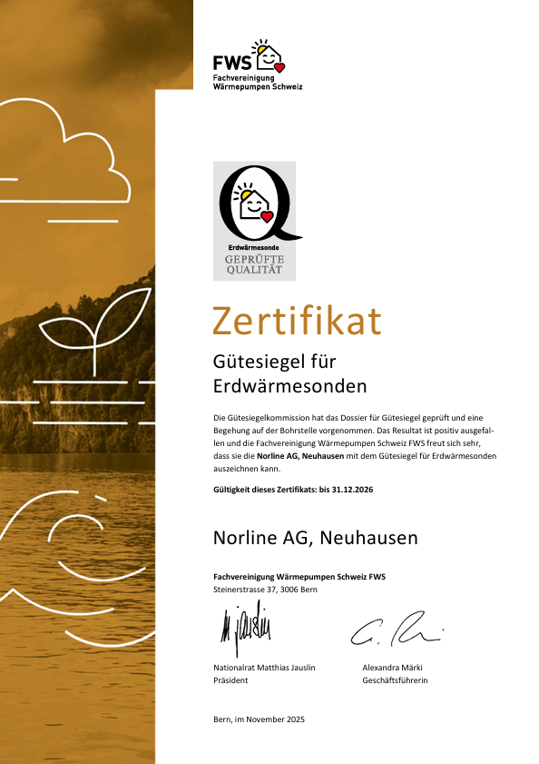 Die Norline AG ist zertifiziert mit dem Gütesiegel der Fachvereinigung Wärmepumpen Schweiz.